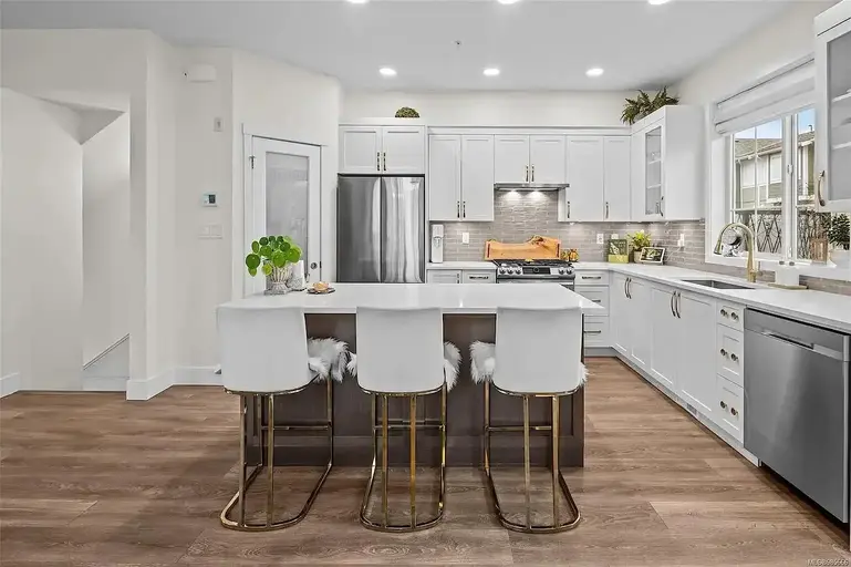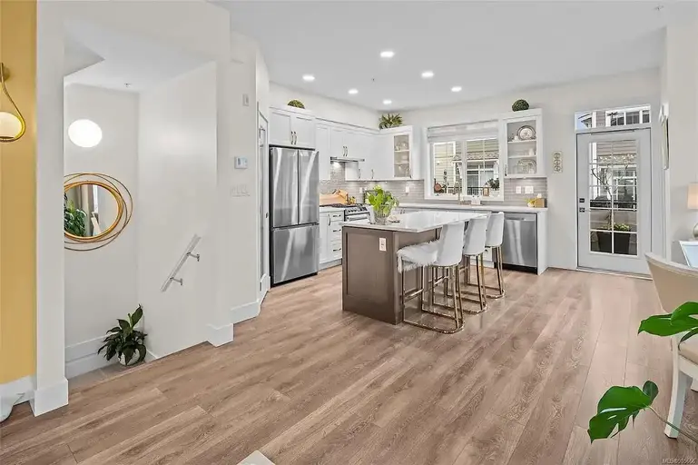 Gorgeous 3 Bedroom, 1 Office, and 2.5 Bath for Rent $3,500/mthThis beautiful townhouse in the coveted Compass neighbourhood at Royal Bay is for rent for Sept. 1, 2025. This bright designer styled appointed 3-bedroom with in-home office townhouse has loads of upgrades with chef's kitchen, featuring stainless steel appliances, a custom pantry, quartz countertops, and island that opens to a serene private patio - perfect for unwinding. Engineered hardwood floor throughout with luxurious gold-accented fixtures, panoramic view of the the Salish Sea and San Juan mountains.The primary bedroom boasts a custom wardrobe, an infloor heating ensuite. Two additional bedrooms are on the top floor with beautiful views of the ocean, a guest bath, and laundry room.This 2021 built home features a 2-car garage with an EV charger and bonus storage. Meadow Park Playground, the Commons Retail Village shopping center, Daycare, High School, and Middle School (being built), Beachlands Oceanfront Park and beautiful beach w. walkway are only steps away.No pets. No smoking. 1-2 year agreement, no month to month.