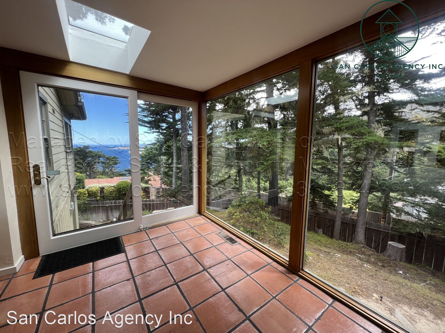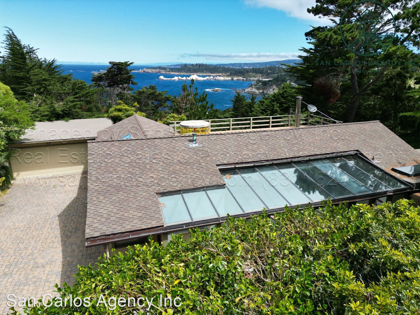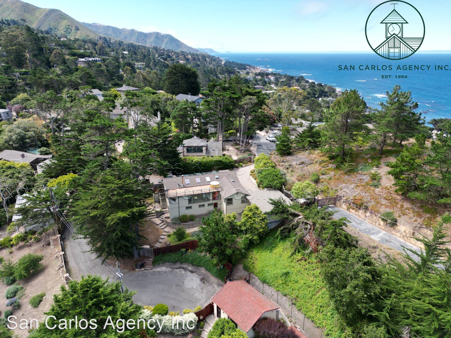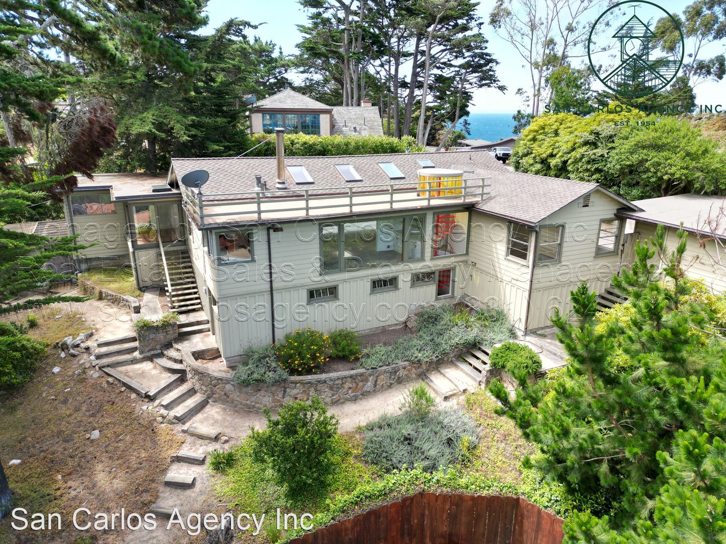 Three Bedroom Carmel Highlands Home with Views - (KOEHD) San Carlos Agency, Inc. offers this charming three bedroom, two bath Carmel Highlands property with beautiful Point Lobos and ocean views. This home boasts a large living room with a panoramic ocean view window and lots of natural light from the multitude of skylights. The updated kitchen has a gas cook-top, double sink, refrigerator, single wall oven, and an eat-in bar. The bathrooms offer a shower in the guest bath and a jetted tub in addition to a shower in the primary bath. The third bedroom/office has a Saltillo tiled floor, but no closets. There is an additional basement room down a spiral staircase that features plenty of storage space and an exit to the backyard. Forced air heat throughout and a large detached two car garage round out this amazing rental property. Washer and dryer left as a courtesy and located off the kitchen. The carpets are brand new. Owner will provide a gardening service. Small pet negotiable. No smoking. Contact San Carlos Agency, Inc. at (831) 624-3901 or rentals@sancarlosagency.com for more information. Visit www.SanCarlosAgency.com or www.CarmelRentalProperties.com.