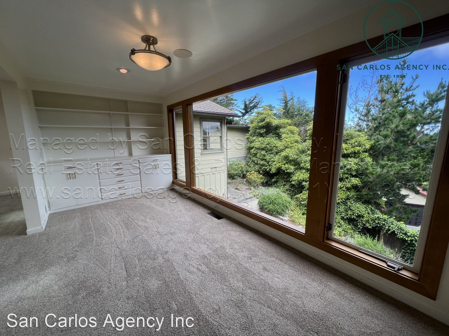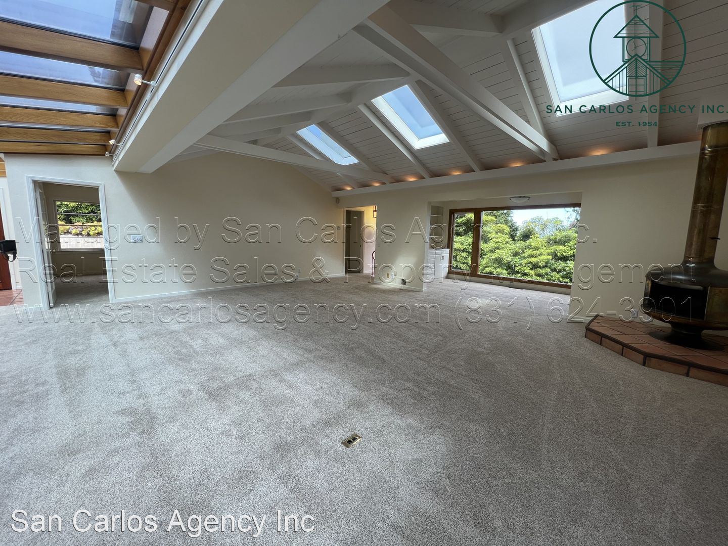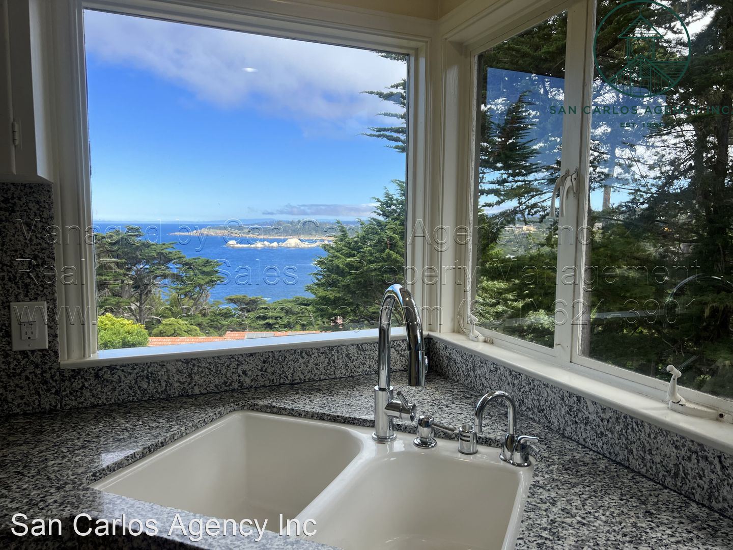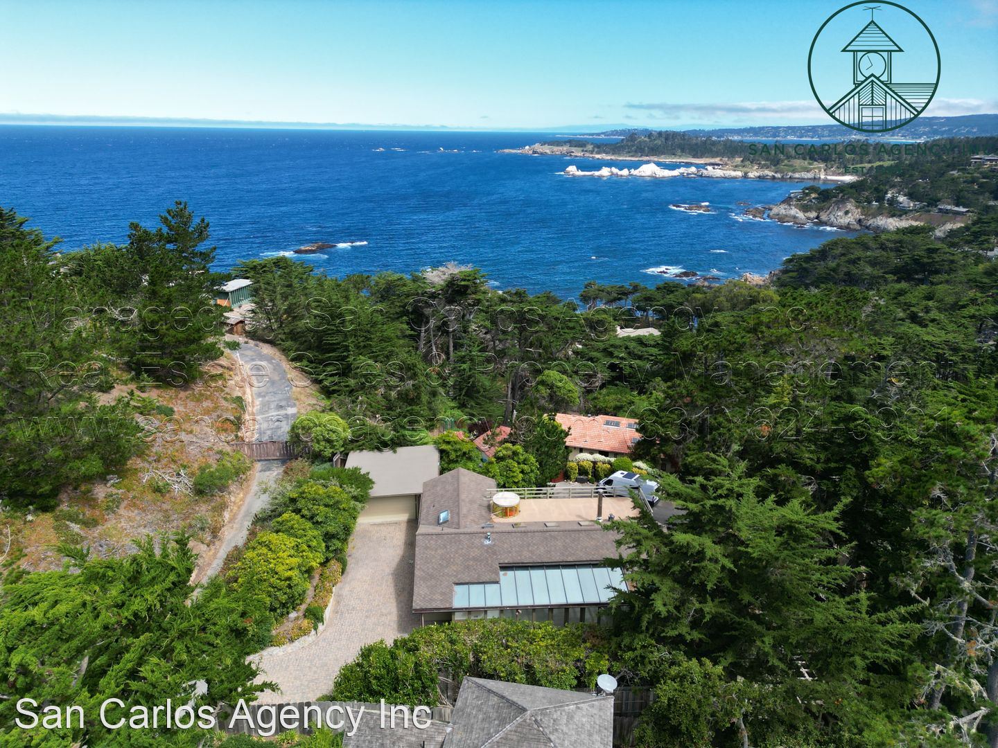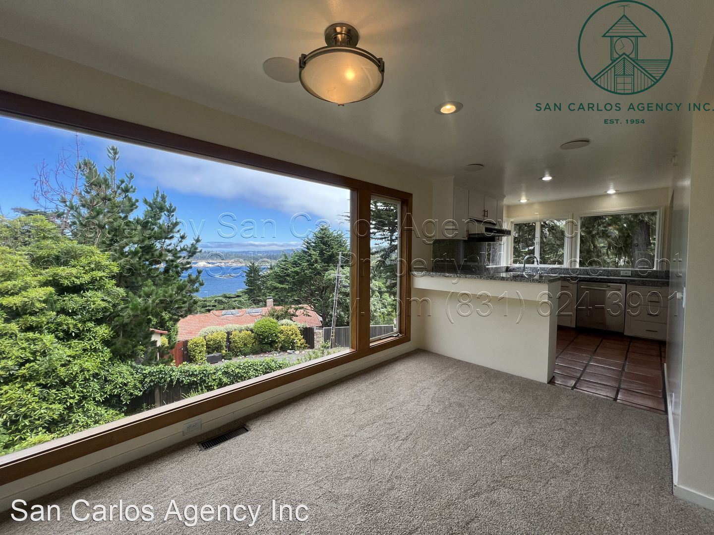 Three Bedroom Carmel Highlands Home with Views - (KOEHD) San Carlos Agency, Inc. offers this charming three bedroom, two bath Carmel Highlands property with beautiful Point Lobos and ocean views. This home boasts a large living room with a panoramic ocean view window and lots of natural light from the multitude of skylights. The updated kitchen has a gas cook-top, double sink, refrigerator, single wall oven, and an eat-in bar. The bathrooms offer a shower in the guest bath and a jetted tub in addition to a shower in the primary bath. The third bedroom/office has a Saltillo tiled floor, but no closets. There is an additional basement room down a spiral staircase that features plenty of storage space and an exit to the backyard. Forced air heat throughout and a large detached two car garage round out this amazing rental property. Washer and dryer left as a courtesy and located off the kitchen. The carpets are brand new. Owner will provide a gardening service. Small pet negotiable. No smoking. Contact San Carlos Agency, Inc. at (831) 624-3901 or rentals@sancarlosagency.com for more information. Visit www.SanCarlosAgency.com or www.CarmelRentalProperties.com.